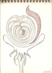 I started sketching. After a gap of over 3 years, it felt nice to let my imagination flow. The first sketch did not look pretty at all…it seemed like toxins oozing through my fingers. It had a soothing effect to my mind though. The next sketch had a calmness about it and felt like a calming effect over rough waters.